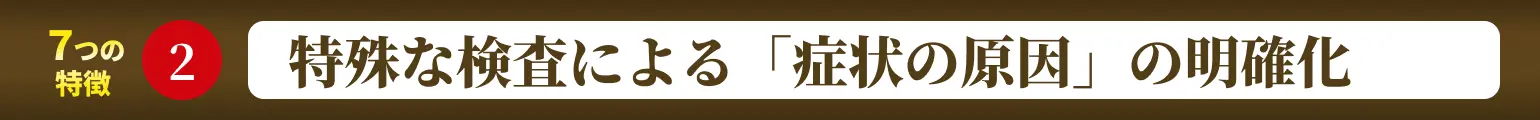 つまり、症状を改善させるためには症状の原因になっているのはなにかを見極めるための徹底した検査が最重要になります。