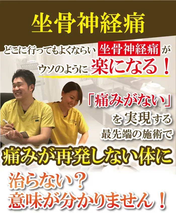 つまり、坐骨神経痛への治療はまず、「なんの疾患による坐骨神経痛なのか」を見極めることが必須となります。