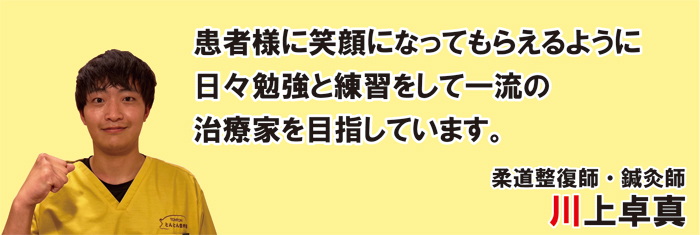 そしてそのとき、お世話になっていたのが、近所の整骨院の先生です。その先生はとても明るく親身になってくださる先生で、私の怪我を治療するだけでなく、進学の相談にも乗っていただいたり、私の心も楽にしてくださいました。このことがきっかけで