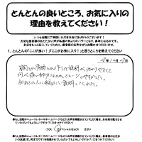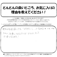 偶然に知った「とんとん」ではじめて診察して頂きましたが、すぐに4年前の自分に戻った様な感激を覚えております。